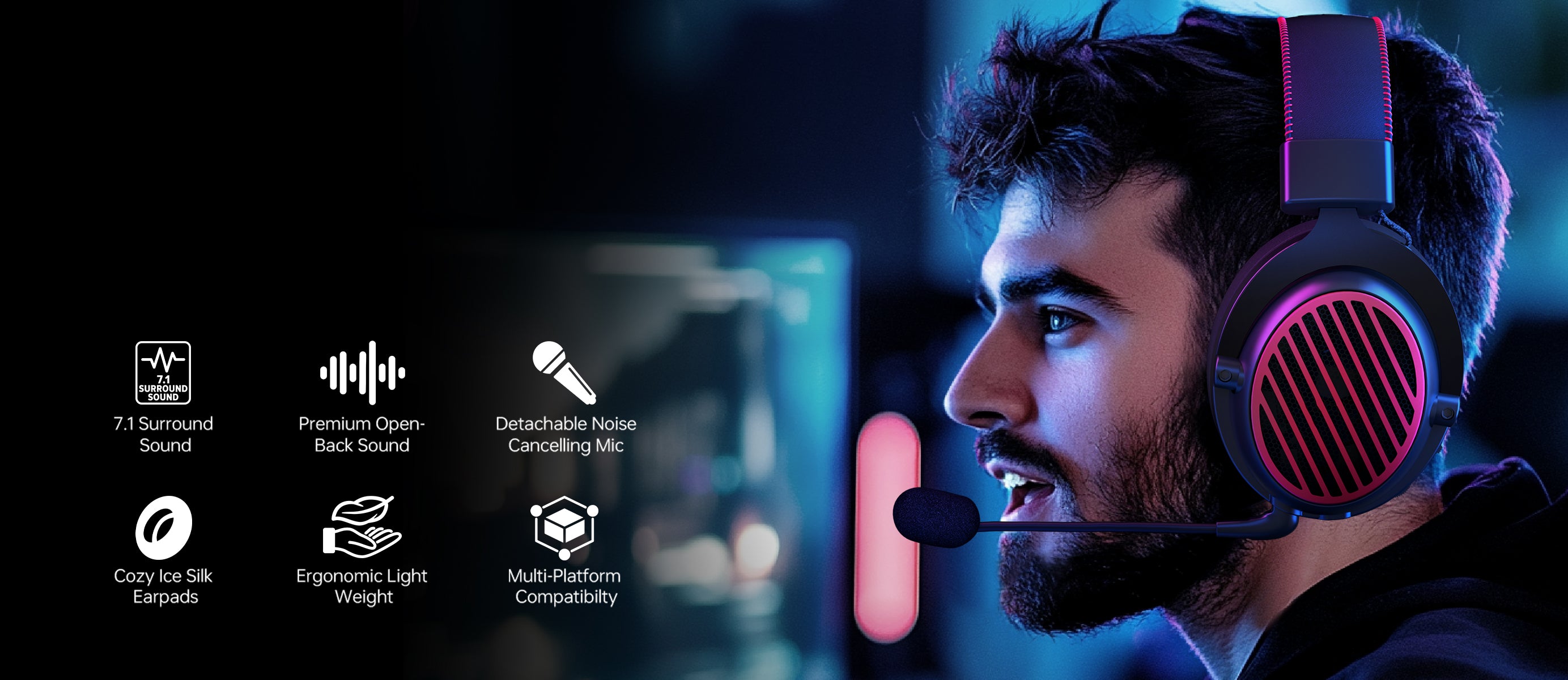 Goditi un gioco senza interruzioni con il comfort lussuoso dei cuscinetti auricolari in seta di ghiaccio di alta qualità e della pelle proteica.